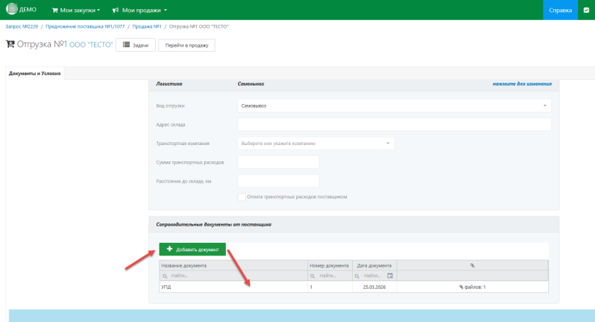 прикрепить сопроводительные документы (накладные, акты, счета‑фактуры и др.) к этой отгрузке в соответствующем разделе.