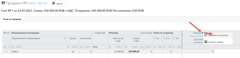 открыть детальную информацию по конкретной отгрузке,