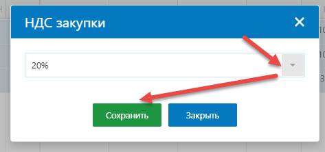 Далее выберите нужную ставку НДС и нажмите сохранить: